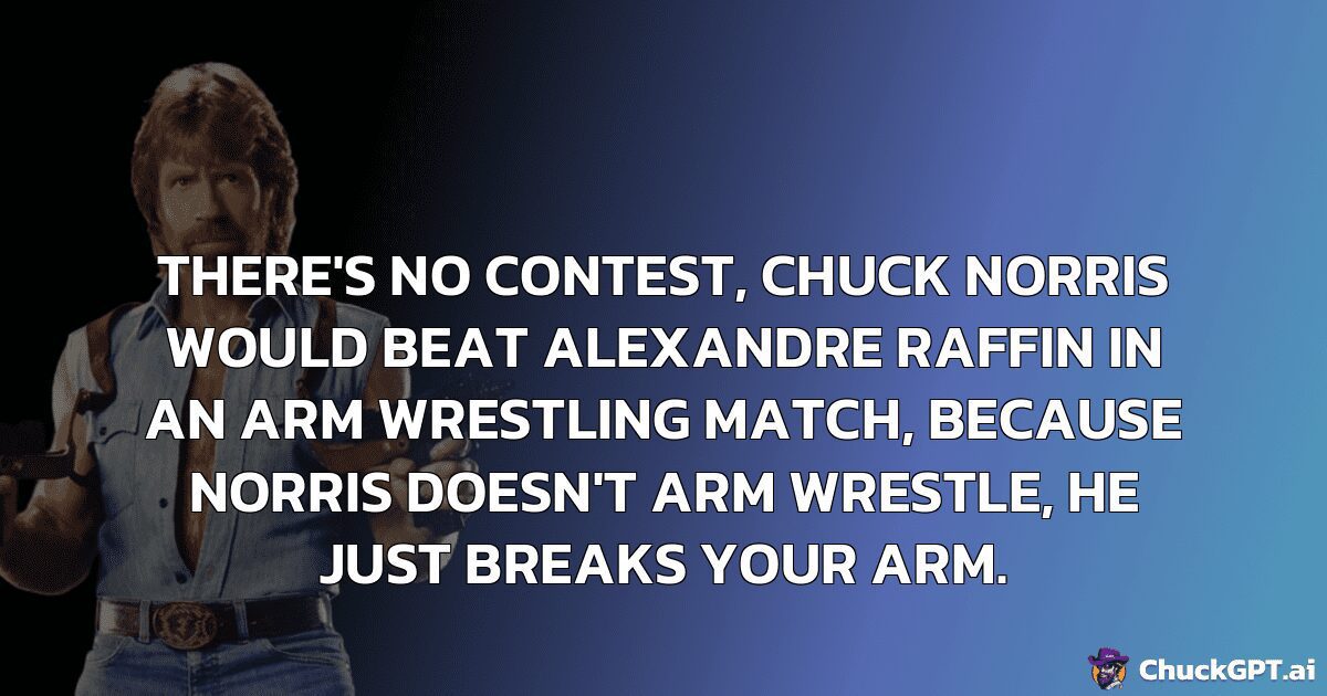 There’s no contest, Chuck Norris would beat Alexandre Raffin in an arm wrestling match, because Norris doesn’t arm wrestle, he just breaks your arm.