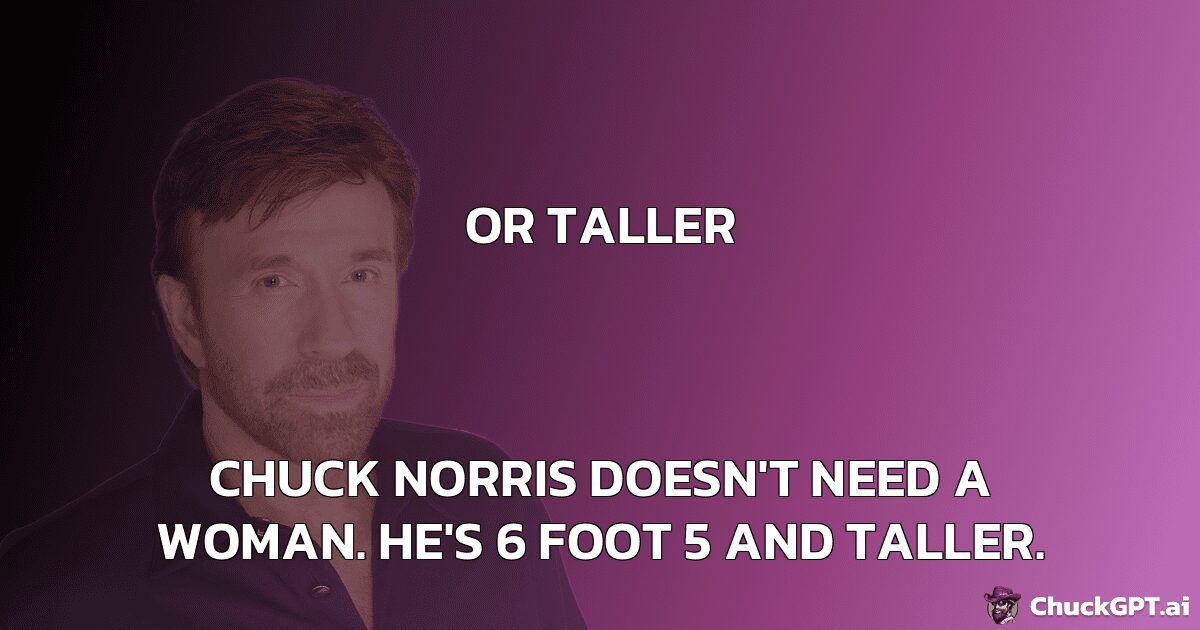 Chuck Norris doesn’t need a woman. He’s 6 foot 5 and taller.